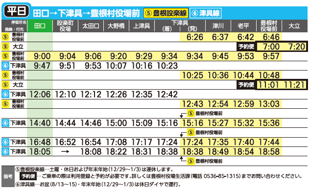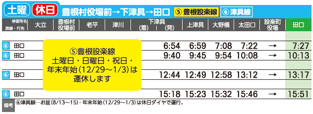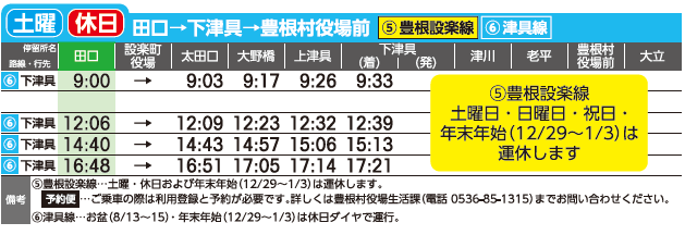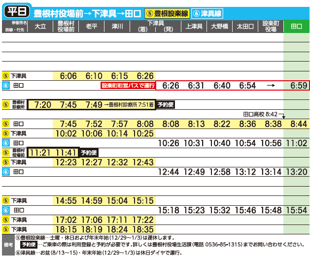 平日朝の便は、設楽町営バス・豊根村営バスが運行します。