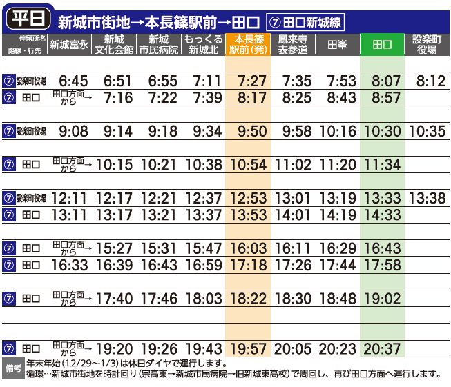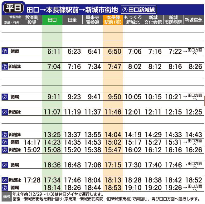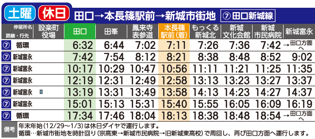 田口(設楽町)~JR本長篠駅前~もっくる新城北~新城市街地 を結ぶ路線です。